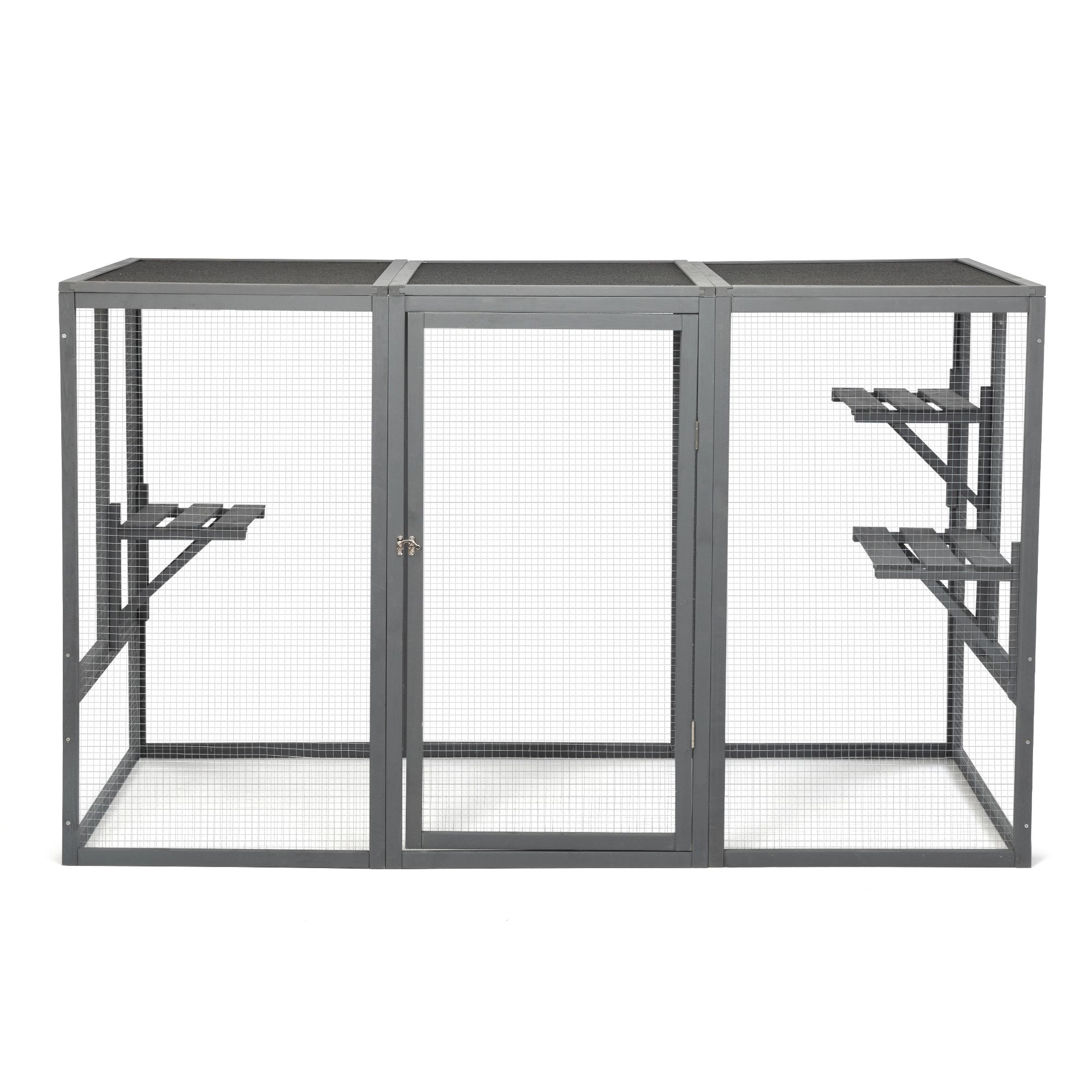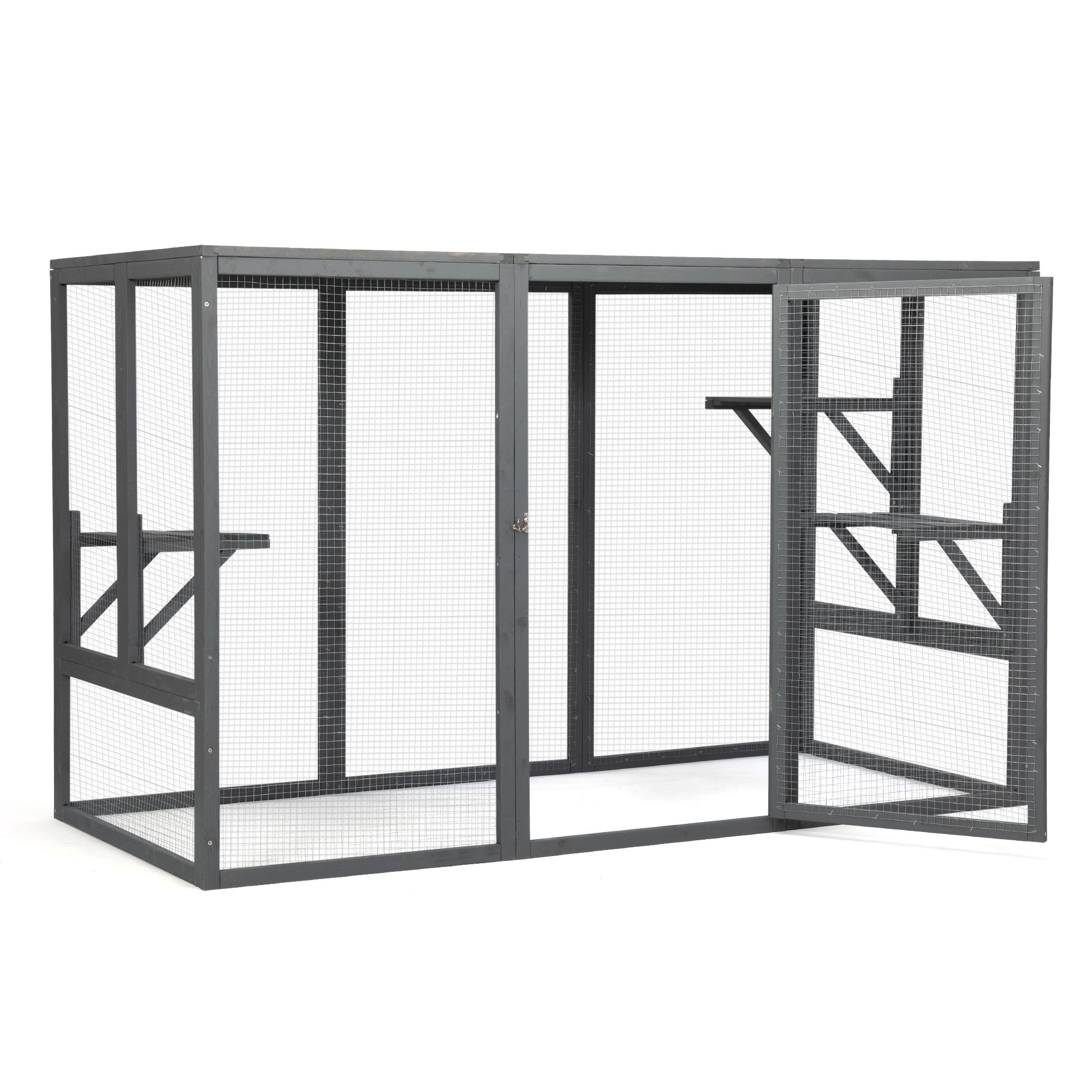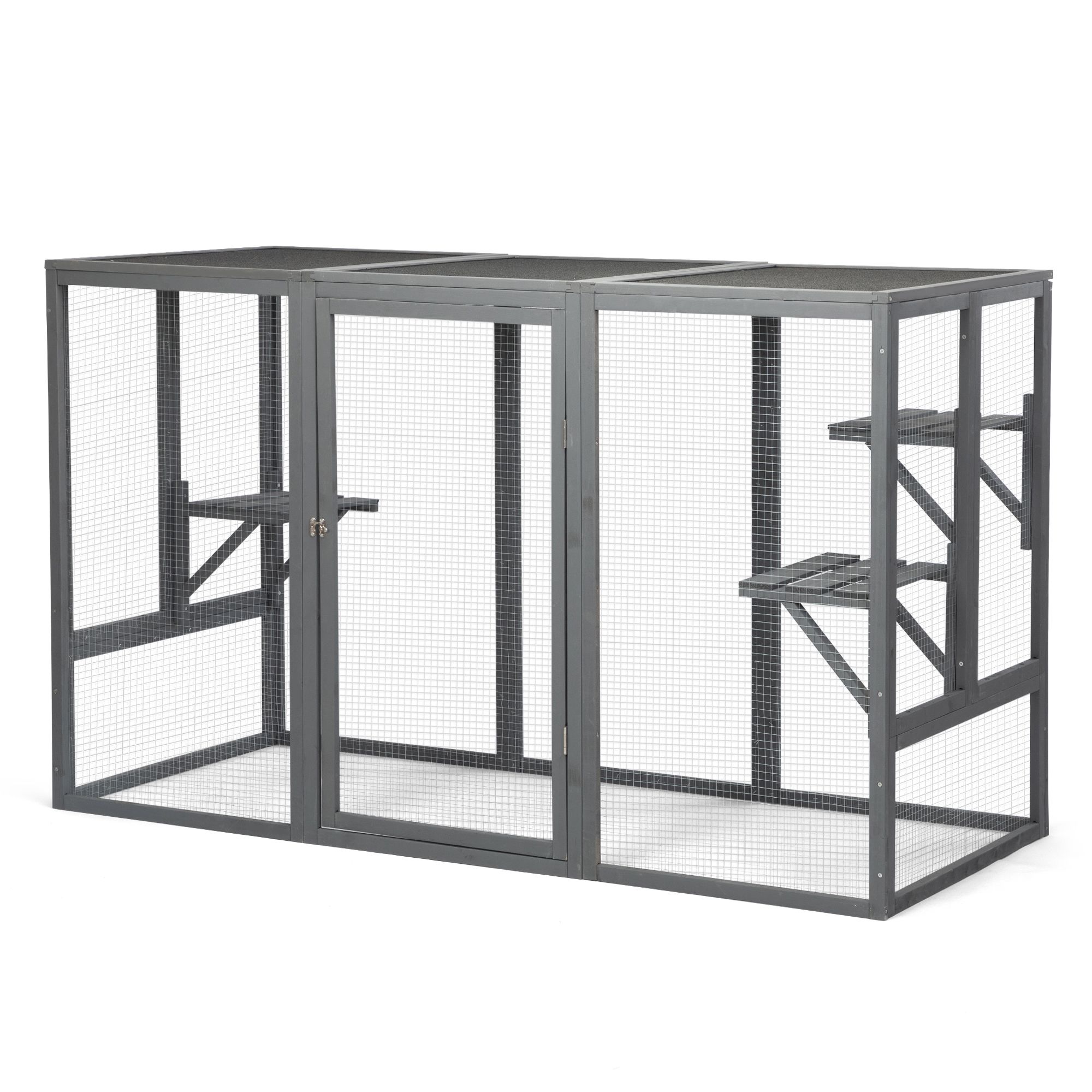 Spacious wooden cat cage with waterproof roof with adjustable pedals suitable - gray black Spacious wooden cat cage with waterproof roof with adjustable pedals suitable - gray black Spacious wooden cat cage with waterproof roof with adjustable pedals suitable - gray black